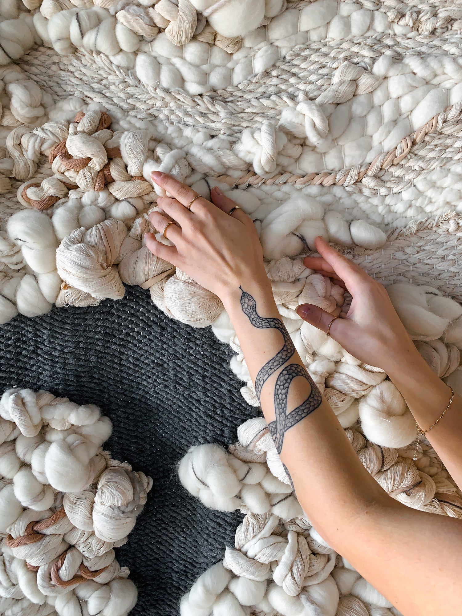 Each piece is woven entirely by hand—an intuitive process that allows texture, movement, and form to emerge organically through the dialogue between material and maker.