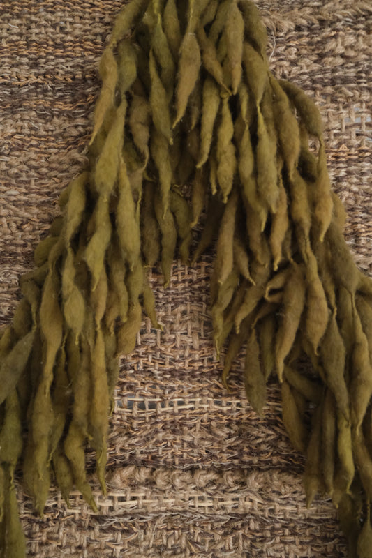 My work exists in the meeting place of sculpture and tapestry, where structure softens into gesture and natural fibers speak of the earth they come from. Guided by rhythm, repetition, and stillness, I approach weaving as a devotional act—a way of listening, remembering, and returning to the body.