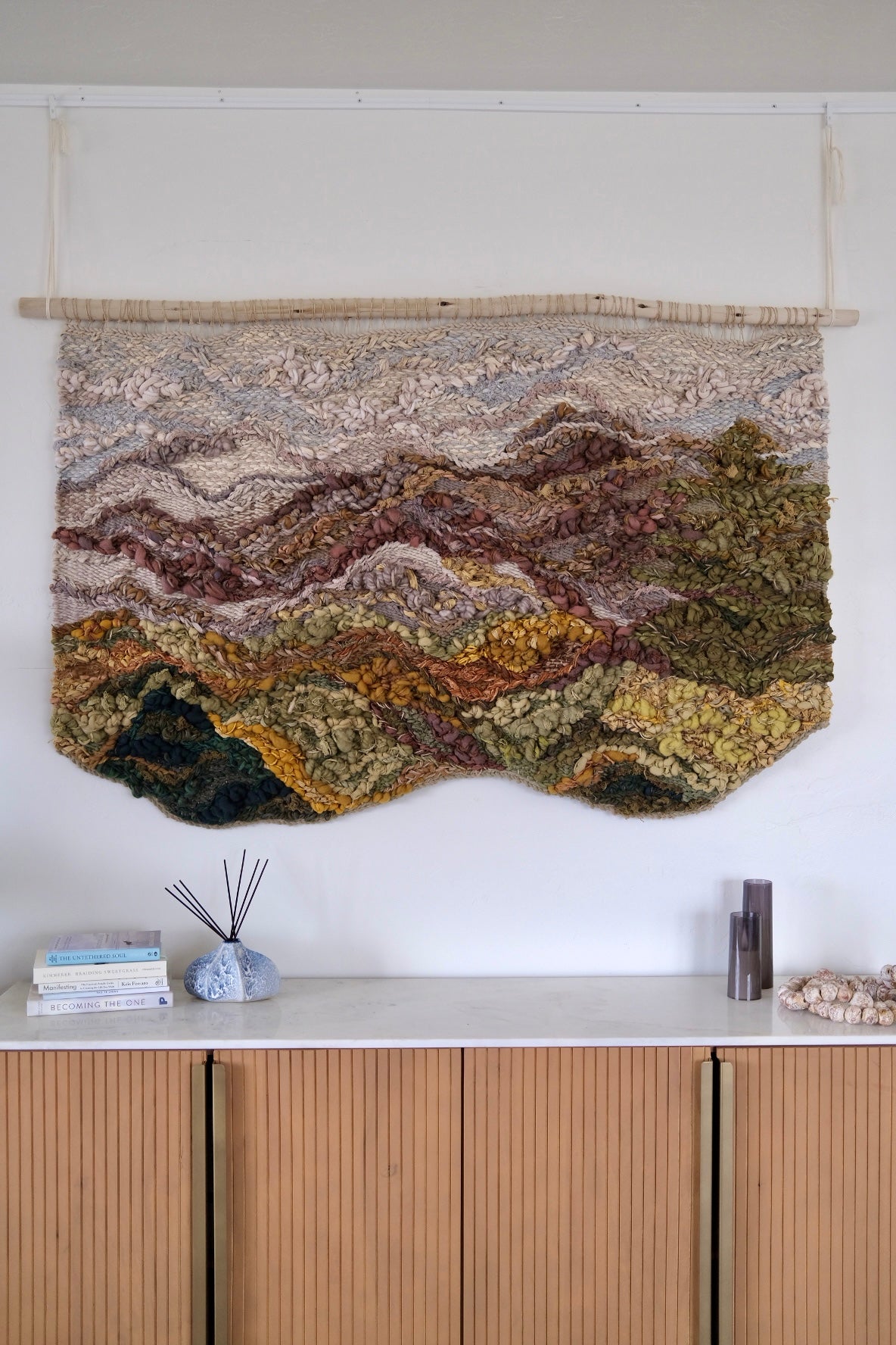 "I am so thrilled with this amazing piece made by Rebecca Whitaker. It fills the space over my bed beautifully and brings me such happiness every day. Rebecca was an absolute joy to work with and kept me in the loop (no pun intended) throughout the entire process. This has been one of the best art experiences and purchases I have ever made. Thank you Rebecca."