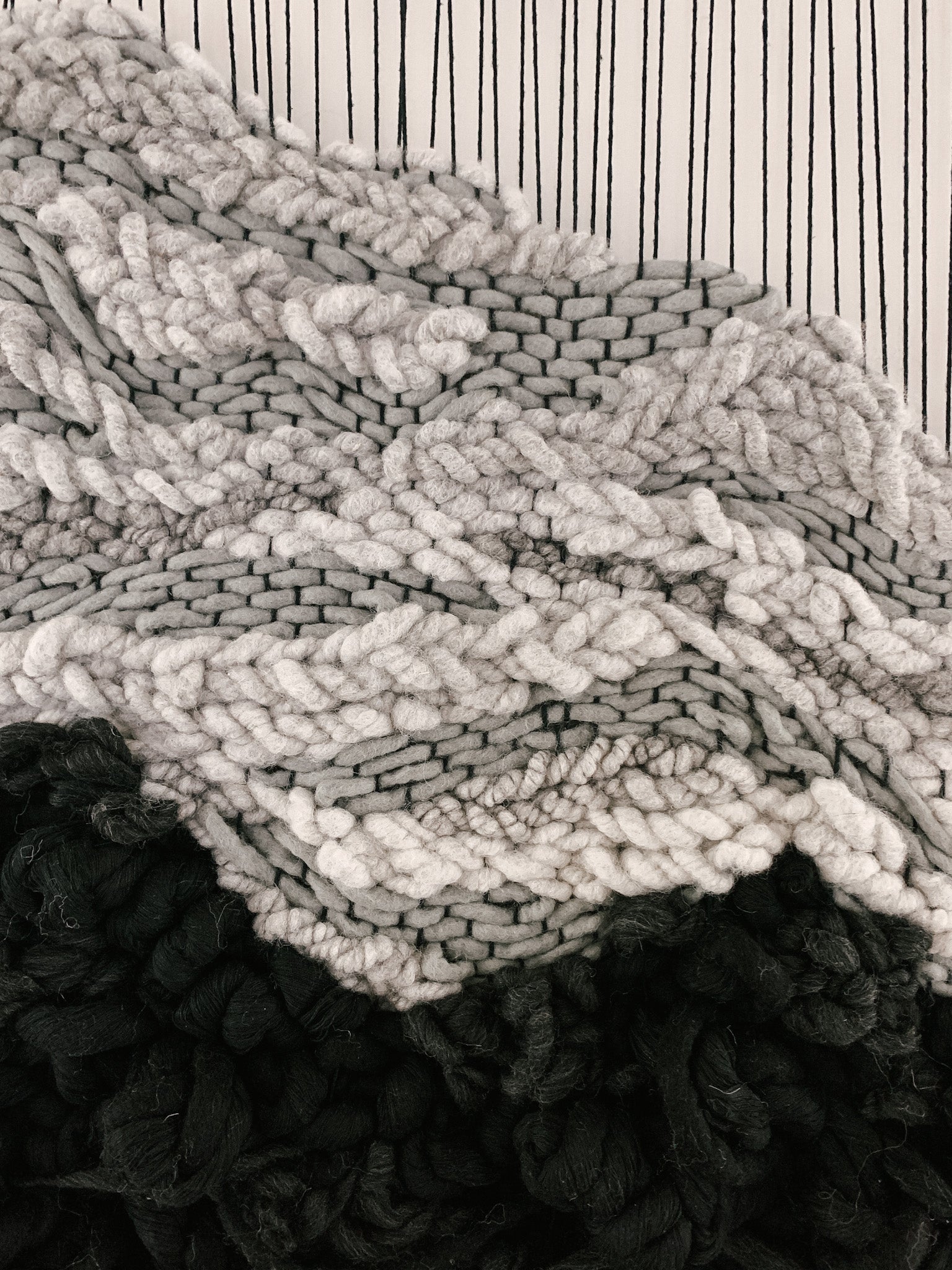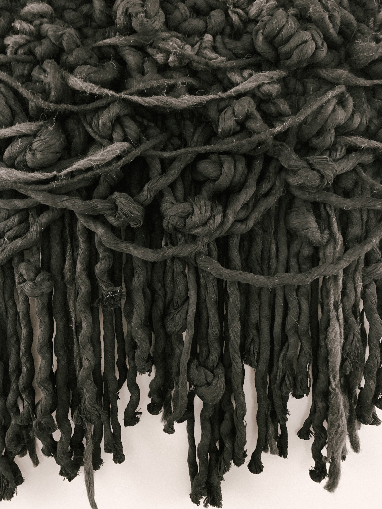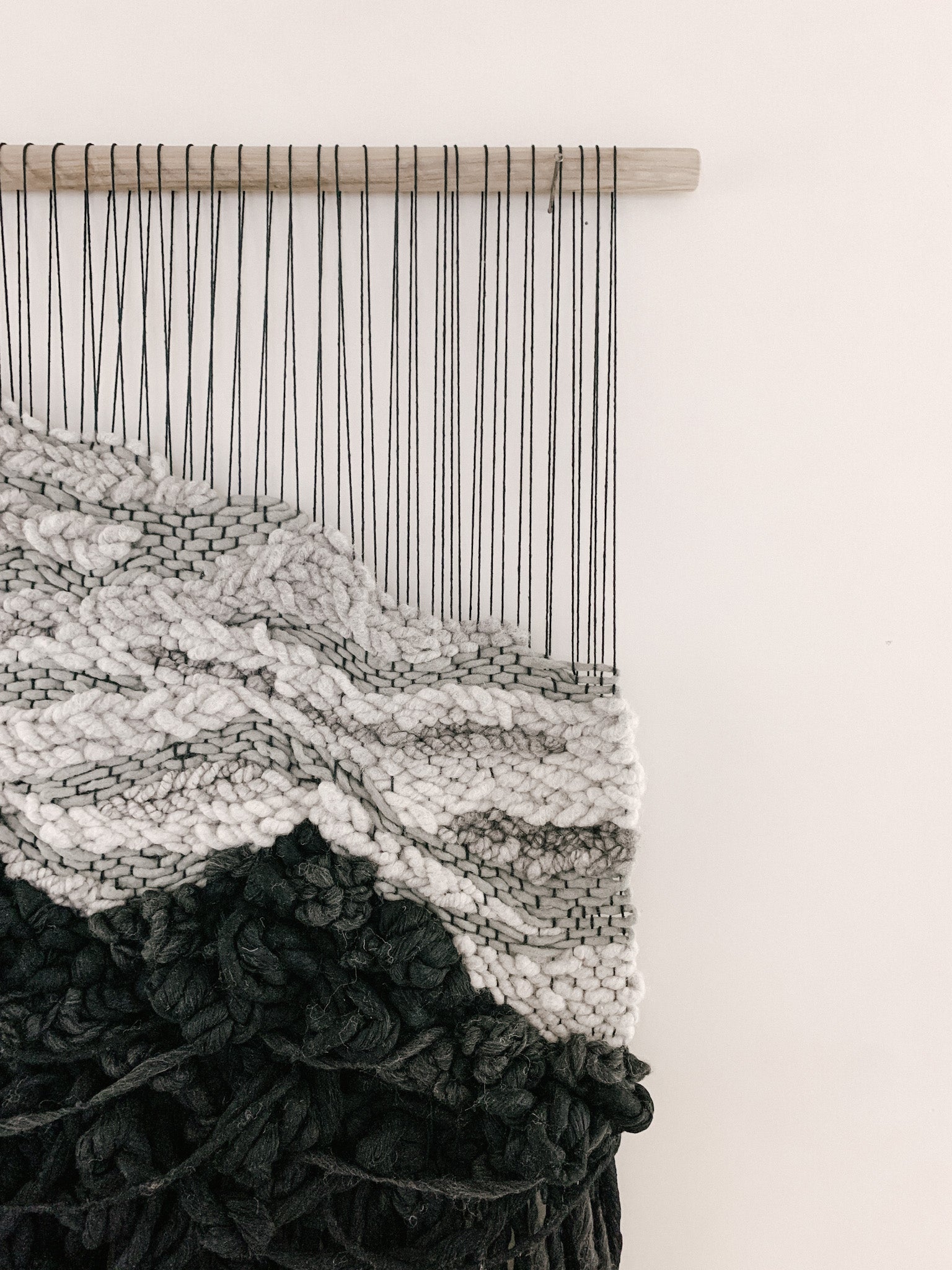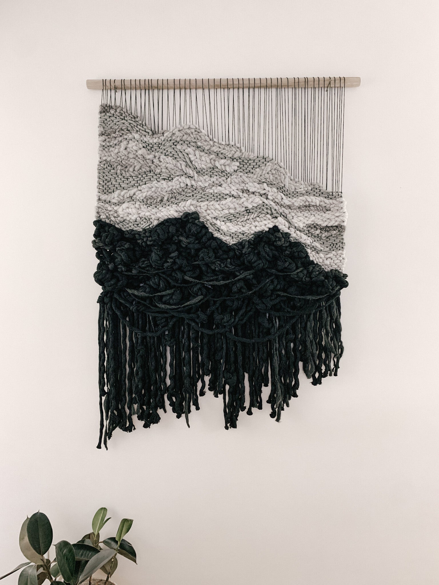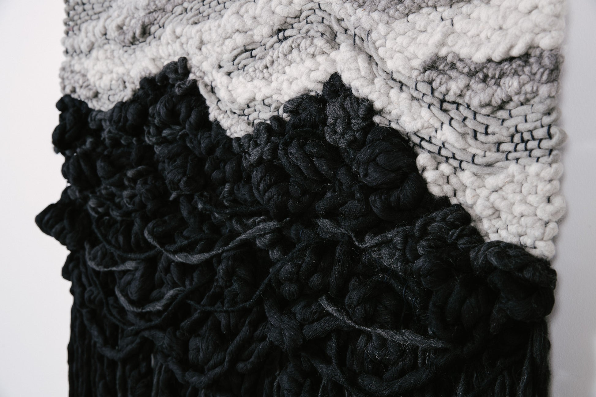 Please handle with care. Rebecca's work is designed to be a decorative wall hanging only, not to be used as rugs or regularly handled. Avoid moisture except to gently steam the fringe if necessary shortly after installation. Use clean hands to comb through fringe or straighten strings at the top, careful to avoid snagging fibers. No maintenance cleaning is necessary besides gently dusting with a feather dusty as needed.