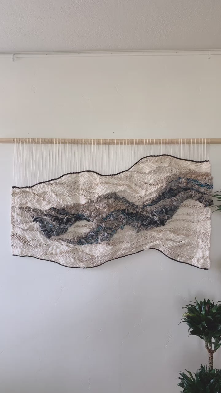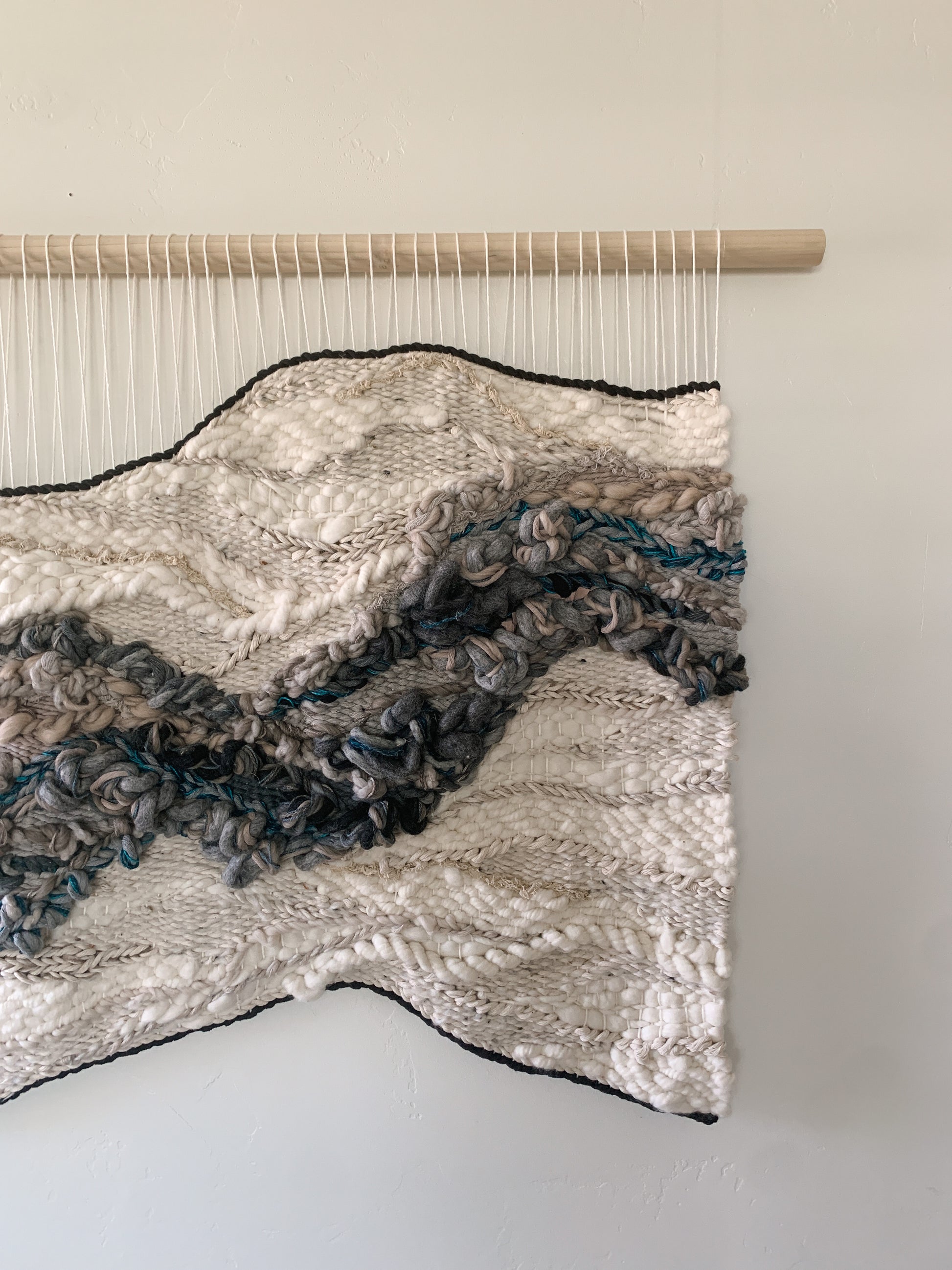 Please handle with care. Rebecca's work is designed to be a decorative wall hanging only, not to be used as rugs or regularly handled. Avoid moisture except to gently steam the fringe if necessary shortly after installation. Use clean hands to comb through fringe or straighten strings at the top, careful to avoid snagging fibers. No maintenance cleaning is necessary besides gently dusting with a feather dusty as needed.