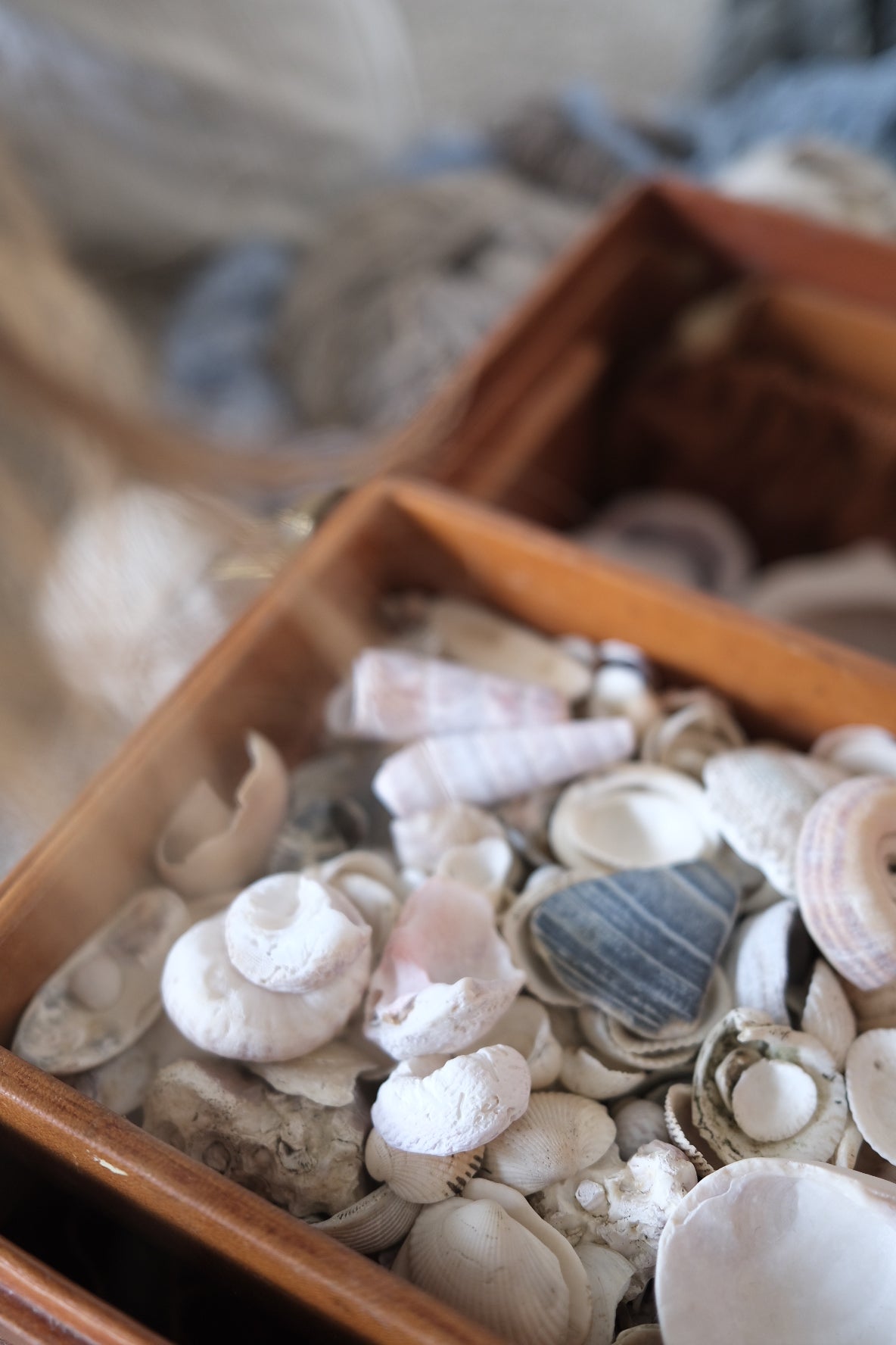 Meaningful materials—such as sea shells, stones, or other personal objects—can be woven directly into the work, becoming quiet markers of memory and connection. In this piece, shells collected by the couple were integrated as a way of honoring shared experiences and the life they’ve built together.