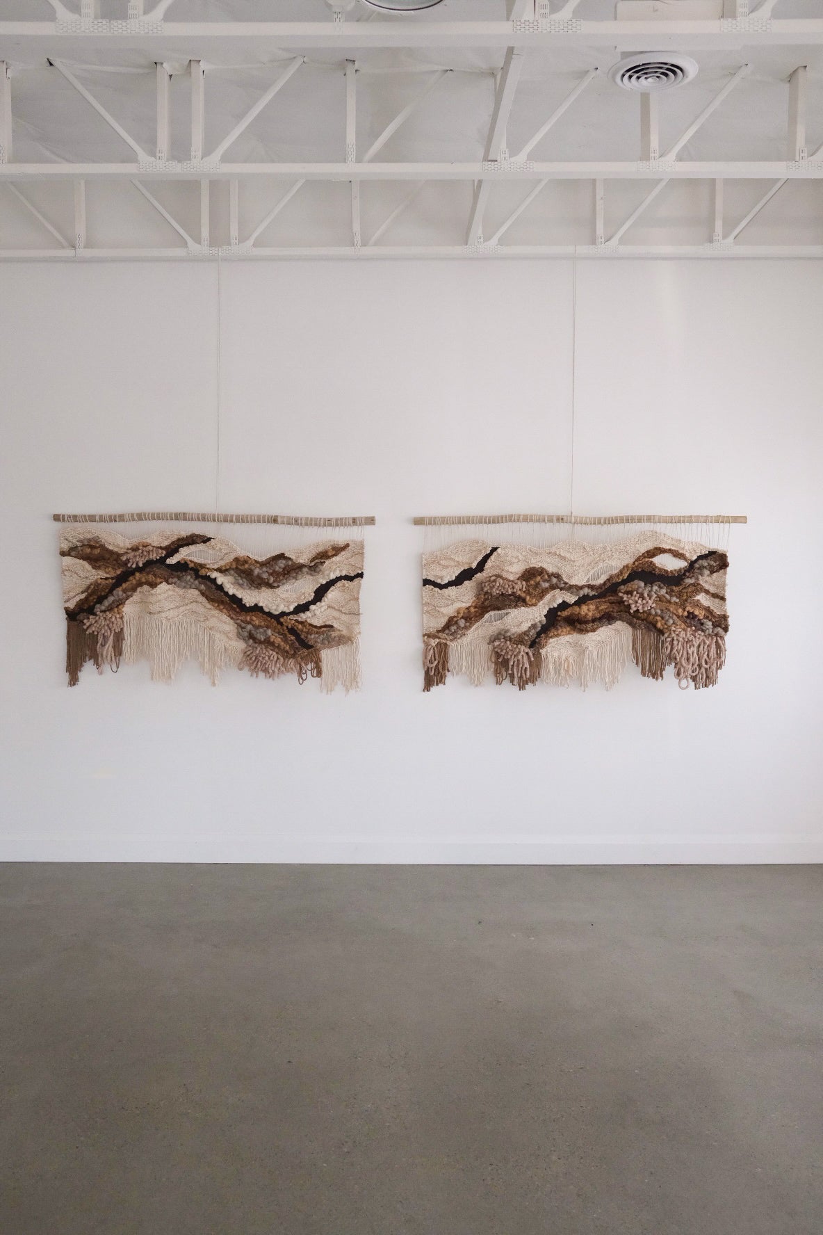 This handwoven diptych is a pair of complementary fiber art wall hangings, created with natural materials such as wool and cotton. Designed as a unified statement, each panel mirrors and balances the other through layered textures, organic forms, and harmonious color palettes. Together, they create a sense of movement and connection, inviting the viewer to experience the work as both two distinct pieces and a single flowing composition.